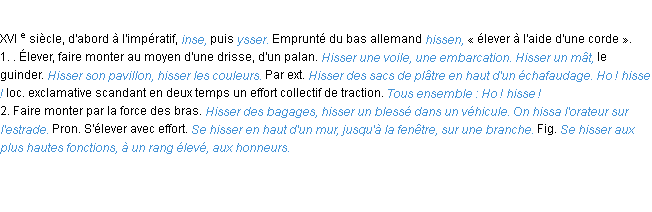 Signification éditée en 2010 par l’équipe de la-definition.fr.Merci à Lunete et Andrée pour la numérisation du mot hisser.