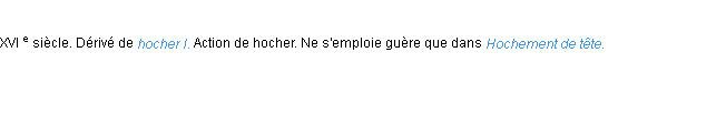 Signification du terme « hochement », parution de 1876 (dictionnaire le Littré).Merci à Julienne et Doriane pour la numérisation du mot hochement.