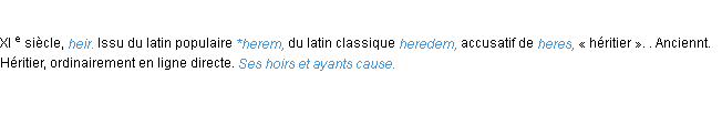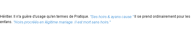 Ancienne signification du terme « hoir », parution de 17962, dictionnaire académique Français.Merci à Jourdain et Eloi pour la numérisation du mot hoir.