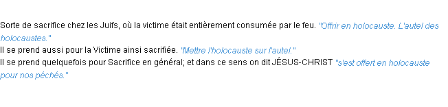 Signification du terme « holocauste », parution de 1932, dictionnaire académique Français.