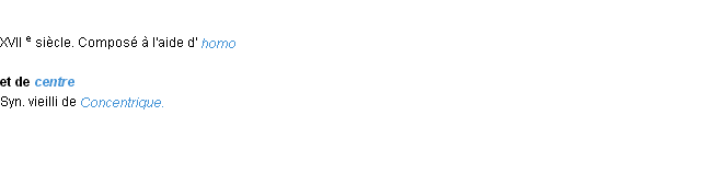 Définition de « homocentrique » issue du Littré (Auteur Emile Littré, édité en 1876).Merci à Maximilienne et Marie pour la numérisation du mot homocentrique.
