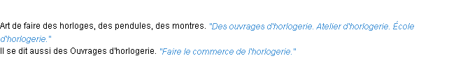 Signification parue en 2009 (source la-definition.fr).Merci à Sacha et Odile pour la numérisation du mot horlogerie.