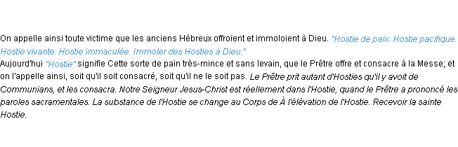 Ancienne définition du mot « hostie » par l’Académie Française (édition de 1798).
