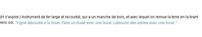 Signification du terme « houe », parution de 1932, dictionnaire académique Français.