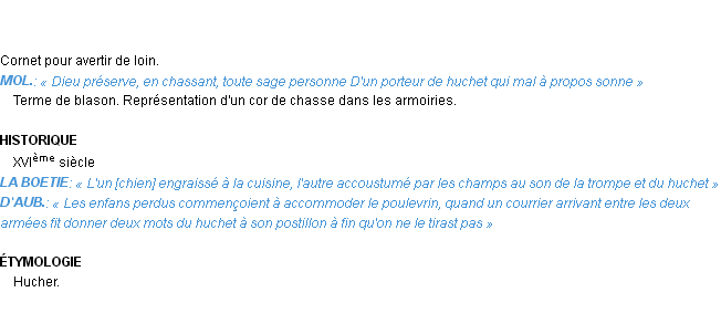 Signification éditée en 1932 pour le terme « huchet » par l’Académie Française.