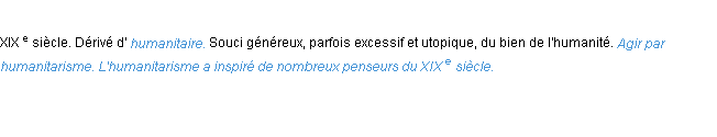Signification éditée en 1876 pour le terme « humanitarisme » par Emile Littré.