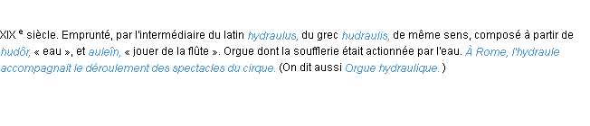 Signification éditée en 1986 pour le terme « hydraule » par l’Académie Française.