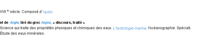 Définition développée dans dictionnaire d’Emile Littré (ancienne édition de 1876).Merci à Angelique et Gaétan pour la numérisation du mot hydrologie.
