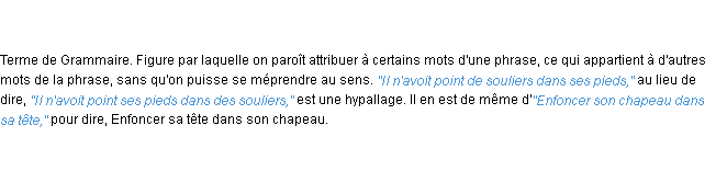 Signification du terme « hypallage », parution de 1932, dictionnaire académique Français.