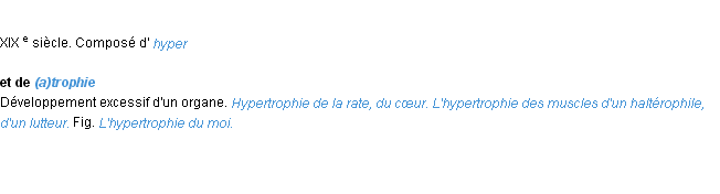 Signification du terme « hypertrophie », parution de 1876 (dictionnaire le Littré).Merci à Virginie et Léandre pour la numérisation du mot hypertrophie.