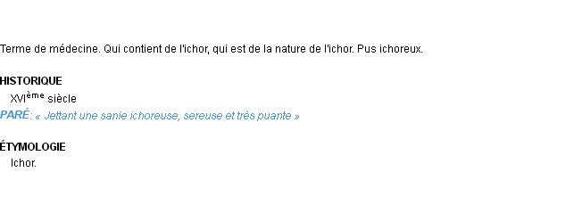 Signification du terme « ichoreux », parution de 1932, dictionnaire académique Français.