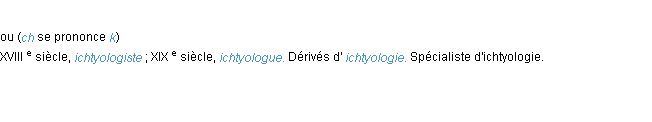 Définition du mot « ichtyologiste » par l’Académie Française (édition de 1932).Merci à Arnaud et Gilles pour la numérisation du mot ichtyologiste.