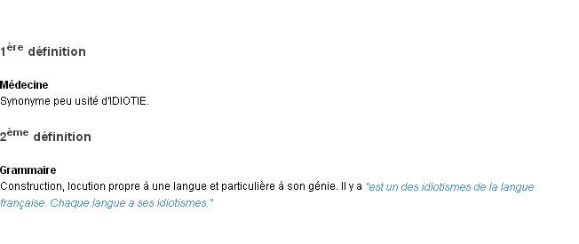 Ancienne définition de l’Académie Française (édition de 1798) pour le mot « idiotisme ».Merci à Apolline et Nathalie pour la numérisation du mot idiotisme.