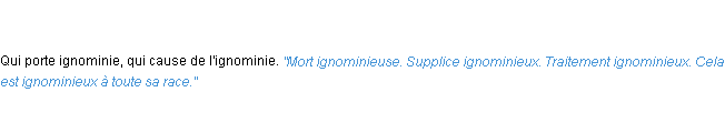 Ancienne définition de « ignominieux » de source académique (Académie Française, parution de 1798).Merci à Cyrille et Sylviane pour la numérisation du mot ignominieux.