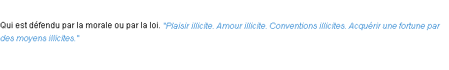 Ancienne signification développée en 1798 par l’académie Française (ACAD - 1798).Merci à Nadine et Fiacre pour la numérisation du mot illicite.