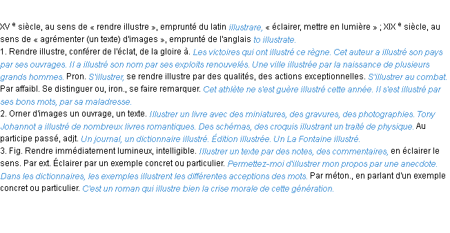 Signification du terme « illustrer », parution de 1986, dictionnaire académique Français.