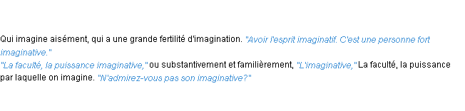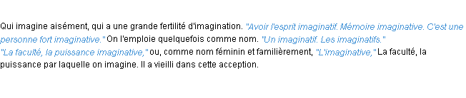 Signification du terme « imaginatif », parution de 1986, dictionnaire académique Français.