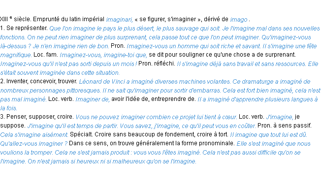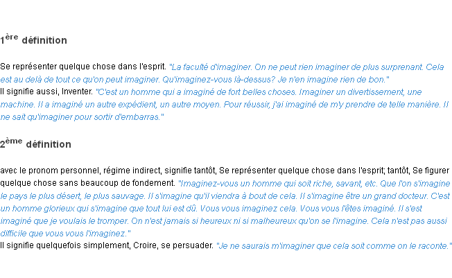 Définition du mot « imaginer » par l’Académie Française (édition de 1986).