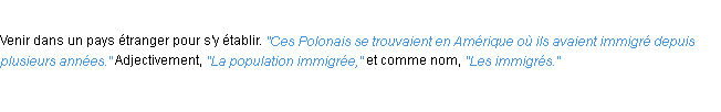 Définition d’Emile Littré (édition de 1876) pour le mot « immigrer ».Merci à Honorine et Colombe pour la numérisation du mot immigrer.