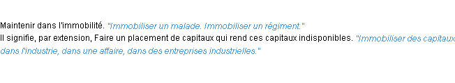 Signification du terme « immobiliser », parution de 1932, dictionnaire académique Français.