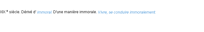 Définition d’Emile Littré (édition de 1876) pour le mot « immoralement ».