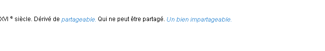 Définition de « impartageable » de source académique (Académie Française, parution de 1932).