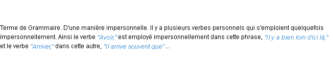 Ancienne définition « impersonnellement » du dictionnaire académique Français, parution de l’année 1835.
