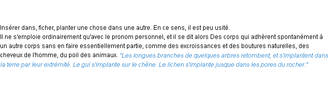 Signification éditée en 1932 pour le terme « implanter » par l’Académie Française.