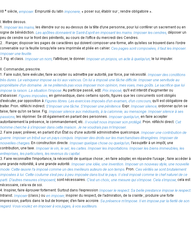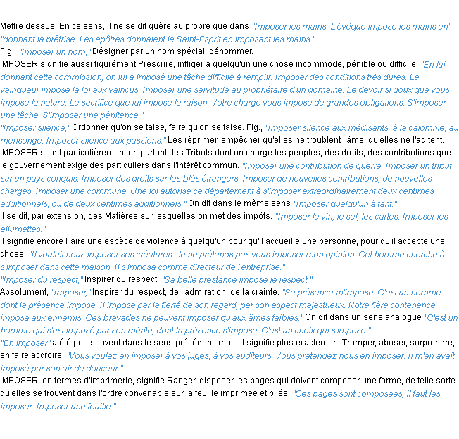 Signification du terme « imposer », parution de 1932, dictionnaire académique Français.