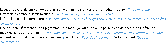 Signification éditée en 1986 pour le terme « impromptu » par l’Académie Française.