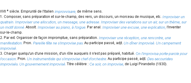 Signification du terme « improviser », parution de 1986, dictionnaire académique Français.