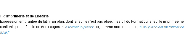 Ancienne définition de « in-plano » de source académique (Académie Française, parution de 1835).