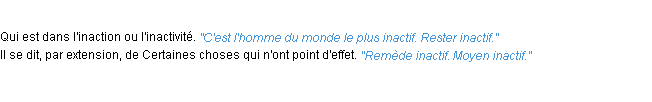 Définition de l’Académie Française (édition de 1986) pour le mot « inactif ».