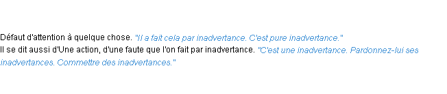 Définition de « inadvertance » de source académique (Académie Française, parution de 1932).