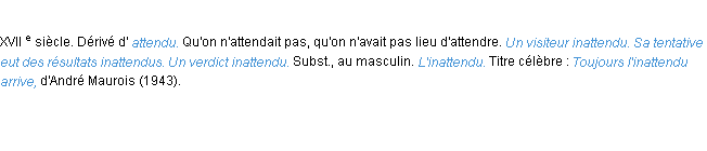 Signification du terme « inattendu », parution de 1932, dictionnaire académique Français.