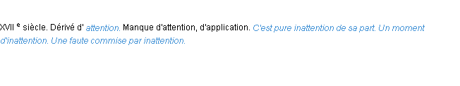 Ancienne signification issue du dico de l’Académie Française, parue en 1798.Merci à Fernande et Papillion pour la numérisation du mot inattention.