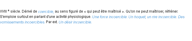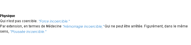 Signification éditée en 1986 pour le terme « incoercible » par l’Académie Française.
