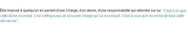 Définition issue du dictionnaire wiktionary pour le mot « incomber ».