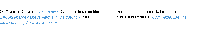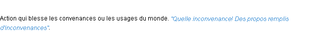 Définition du mot « inconvenance » par l’équipe de la-definition.fr (édition de 2011).