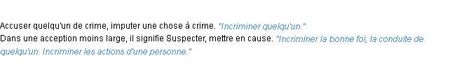 Définition du mot « incriminer » par l’Académie Française (édition de 1986).