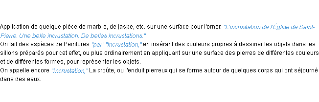 Définition de « incrustation » de source académique (Académie Française, parution de 1932).
