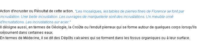 Ancienne définition développée dans dictionnaire académique, 1798.Merci à Amaury et Marc pour la numérisation du mot incrustation.