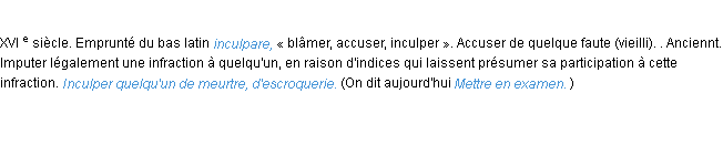 Ancienne définition « inculper » du dictionnaire académique Français, parution de l’année 1835.