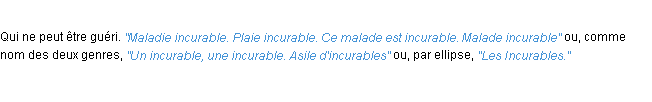 Signification du terme « incurable », parution de 1932, dictionnaire académique Français.