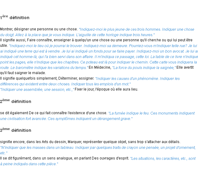 Définition « indiquer » du dictionnaire académique Français, parution de l’année 1932.