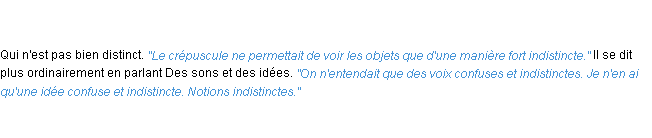 Définition de « indistinct » de source académique (Académie Française, parution de 1986).