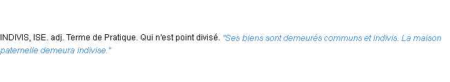 Ancienne signification issue du dico de l’Académie Française, parue en 1798.Merci à émilien et Olivie pour la numérisation du mot indivis.