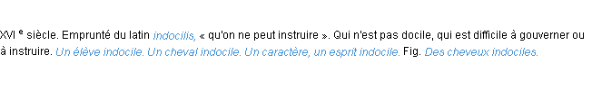 Ancienne signification éditée en 1798 pour le terme « indocile » par l’Académie Française.