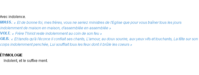 Définition de l’équipe de la-definition.fr (édition de 2009) pour le mot « indolemment ».