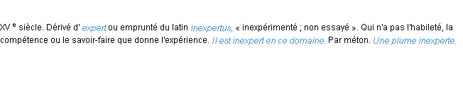 Définition du mot « inexpert » par l’équipe de la-definition.fr (édition de 2011).